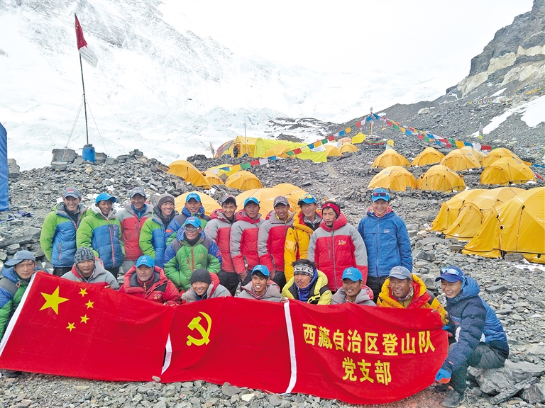 2017年,西藏自治區登山隊隊員在珠峰腳下舉行主題黨日活動。