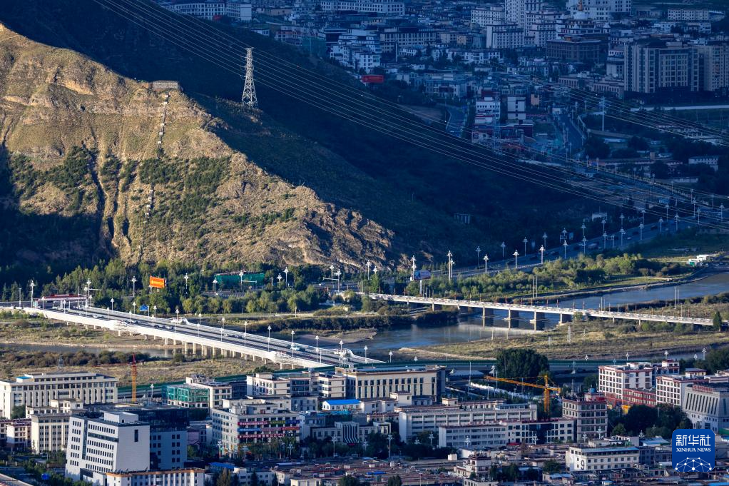 這是8月1日拍攝的藏熱大橋(左)和拉薩大橋。新華社記者 姜帆 攝