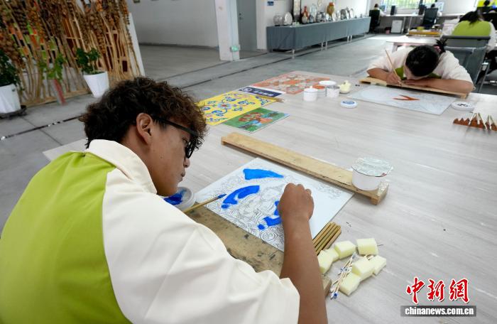 8月6日,拉薩市蓮華之寶中華藏瓷文化旅游體驗園景區里,工作人員正在陶瓷繪畫。蓮華之寶中華藏瓷文化旅游體驗園景區集展覽、銷售與文化體驗于一體,通過與高校開展校企合作等方式,將唐卡繪畫藝術與陶瓷工藝結合,傳播優秀傳統文化。中新社記者 李林 攝
