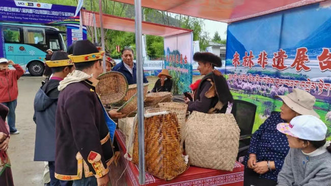 非遺展區同樣引人注目。展區內,珞巴織布、珞巴竹編、工布氆氌、工布畢秀四項非遺項目的傳統手工制品精巧陳列,這些凝聚匠心的展品集中展現了米林市非物質文化遺產的深厚底蘊和傳承活力,讓現場觀眾近距離感受了非遺文化的獨特魅力。