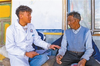 隨后,他用平板電腦詳細記錄檢測的各項情況,形成了一份電子健康檔案。“村醫的醫療能力有限,我們更多是跟蹤檢查,建立患者的健康檔案,摸清健康底數,讓上級醫療機構完整了解信息。”索朗丹增介紹。