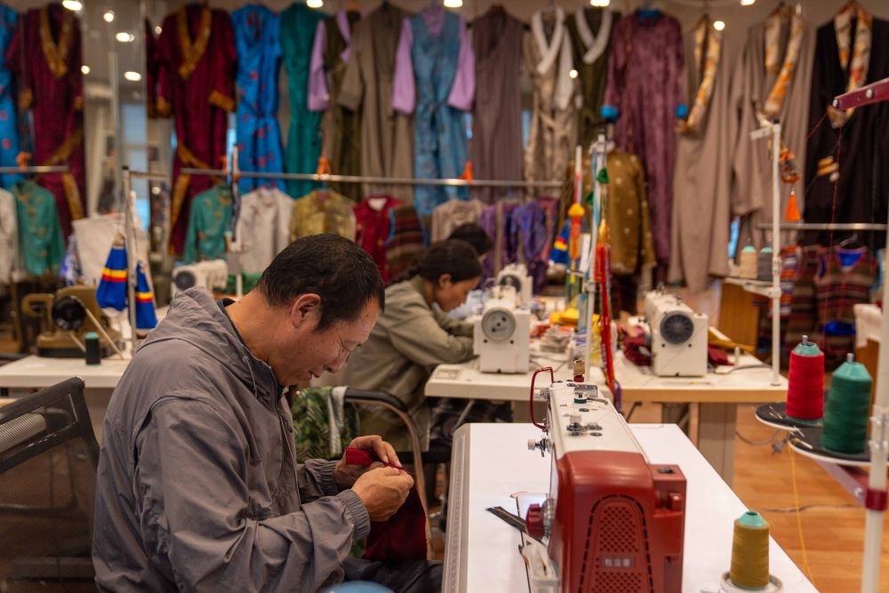 8月6日,服裝師在制作拉薩服飾。拉薩服飾入選西藏自治區級非物質文化遺產代表性項目名錄。