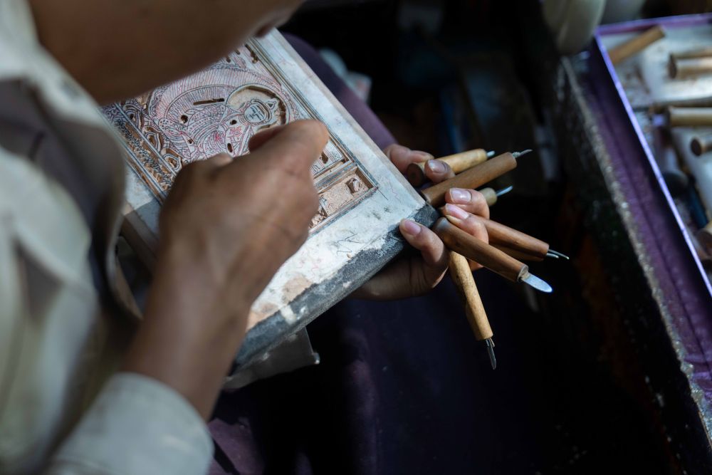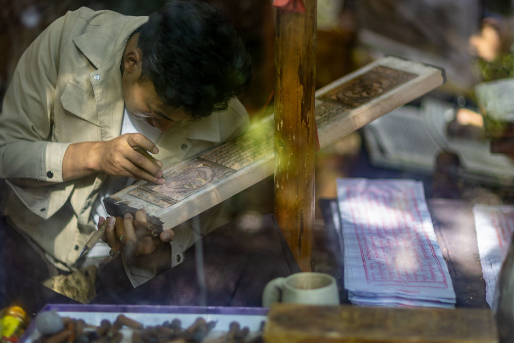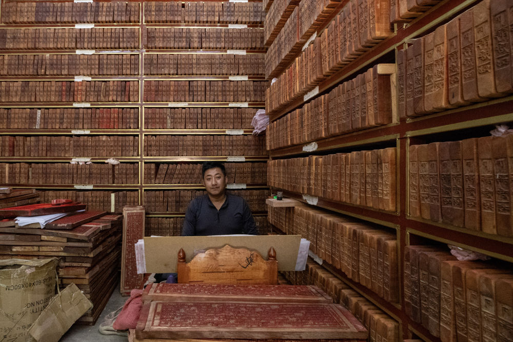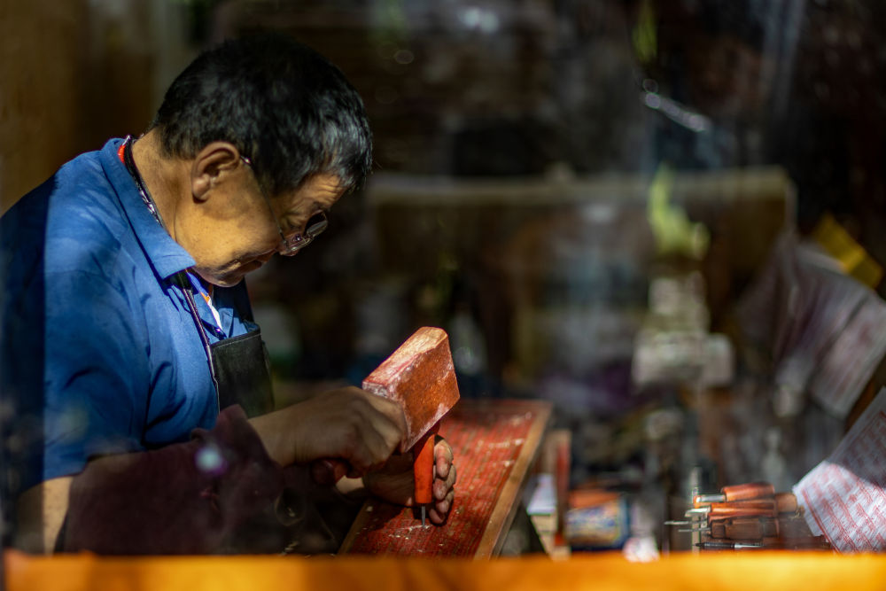 8月6日,一名雕刻師在工作中。西藏雪巴康雕版印刷制作技藝入選西藏自治區級非物質文化遺產代表性項目名錄。