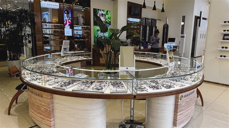 在南樓一層,瑞幸咖啡的藍色招牌與霸王茶姬的紅色燈籠相映成趣,構筑起高原最強的咖啡茶飲矩陣。澳免國際美妝區內,蘭蔻、雅詩蘭黛等全球品牌專柜整齊陳列,產品與區外同步上新且價格一致。明廊永視眼鏡店的乳白色柜臺前,驗光設備閃爍著科技微光,負責人彭春永介紹:“升級后加裝了藏式紋樣屏風,自動門和LED屏讓老店煥發新顏。”