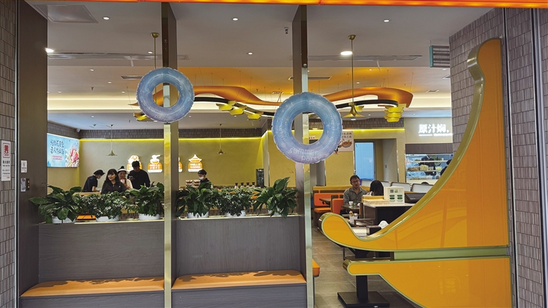 餐飲區的升級尤為亮眼。碳在燒、樸金順自助烤肉、加荷港式茶餐廳等數十家店鋪煥新亮相,從環境到菜品均煥發全新活力。黃記煌三汁燜鍋店負責人胡洋介紹,該店面于今年4月完成煥新,廚房由封閉式改為開放式“明廚亮灶”設計,整體色調更柔和,空間布局更通透,并融入本地人喜愛的食材以精準契合消費需求。其他店鋪亦響應商場號召,在開放式布局、環境陳設、空間規劃、燈光氛圍及色彩搭配上精雕細琢,顯著拉升了營業額。用餐高峰時段,各餐廳幾乎座無虛席,多元風味滿足不同客群喜好。市民扎西贊嘆這里環境舒適、明廚操作令人安心,加之本地特色食材,已成為全家常聚的用餐首選。