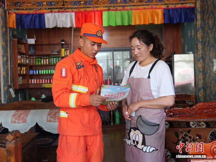 圖為消防隊員正在深入轄區沿街“入戶式”宣講防災減災知識。林芝市森林消防支隊供圖