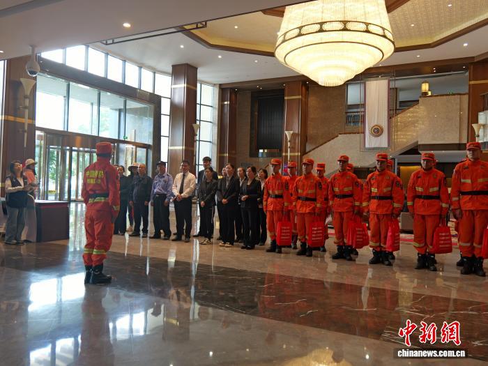 圖為消防隊員正在酒店宣傳防災減災知識。林芝市森林消防支隊供圖