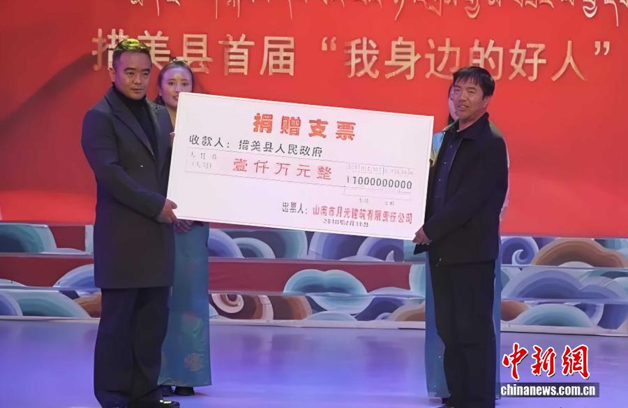 2018年,晉美在措美縣首屆春節(jié)、藏歷新年晚會上,向措美縣捐贈1000萬元扶貧資金,助力脫貧攻堅工作。 受訪者供圖