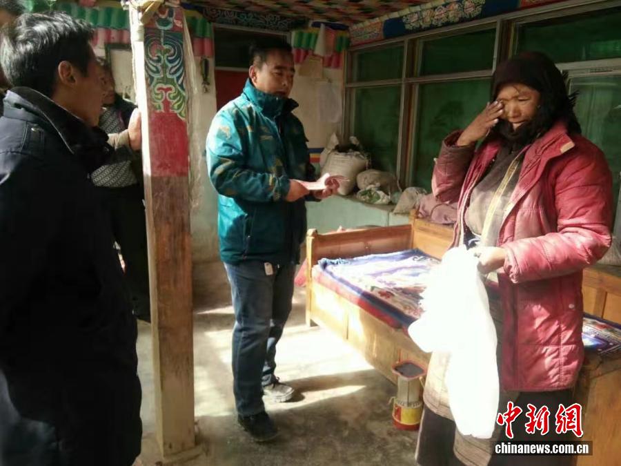 晉美參與扶貧幫困工作期間,一位幫扶戶流下激動的淚水。 受訪者供圖