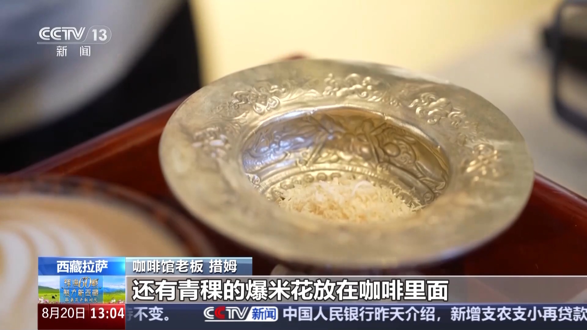 咖啡館老板 措姆:這款是我們店里面賣得最火爆的一款原創產品——拉薩拿鐵,我們準備了牦牛奶的奶渣、酥油、青稞的爆米花放在咖啡里,讓客人體驗到西藏本地食材和咖啡融合的感覺。