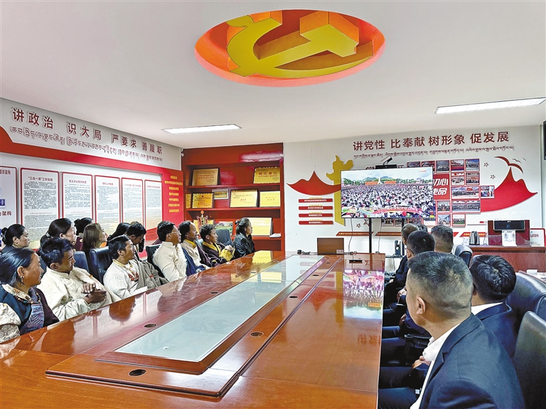 日喀則市謝通門縣仁欽則鄉倫珠孜村的村民們集中觀看了現場直播,現場不時傳出熱烈掌聲。老黨員仁增多吉感慨萬千:“我深切體會到了沒有中國共產黨就沒有社會主義新西藏,就沒有我們今天的幸福生活。我將始終維護祖國統一,加強民族團結,堅定不移聽黨話、矢志不渝跟黨走。”