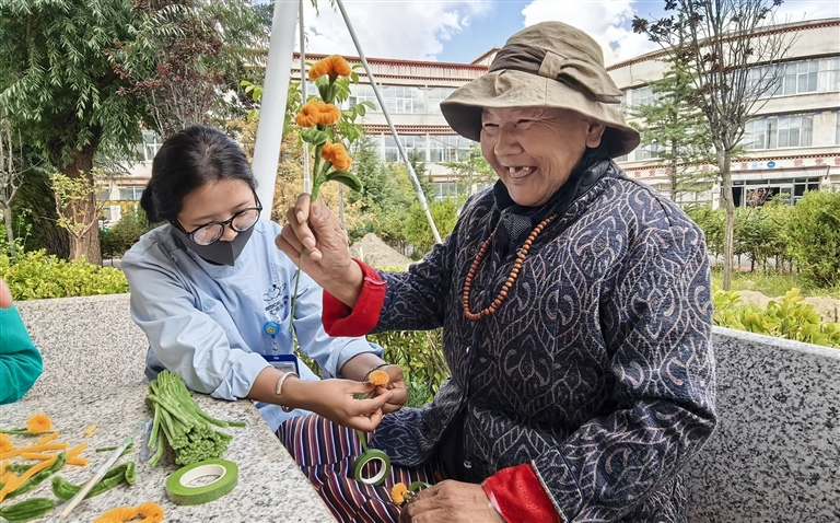 近日,記者走進拉薩市社會福利院的大門,一陣歡快的笑聲便撲面而來。循聲望去,涼亭下,幾位老人正圍坐在一起,手中拿著彩色毛線,在編織老師的耐心指導下專注地編織著花朵。“看,我的花做好了!”卓嘎老人高高舉起剛剛完成的一朵黃色小花,孩子般興奮地向同伴們展示。她的手指雖有些顫抖,但眼神中卻掩飾不住自豪。另外一邊,幾位老人正在院子里悠閑地散步,一位護工正小心翼翼地攙扶著行動不便的老人,輕聲問道:“今天腿還疼嗎?要不要去理療室做做按摩?”關切之情溢于言表。