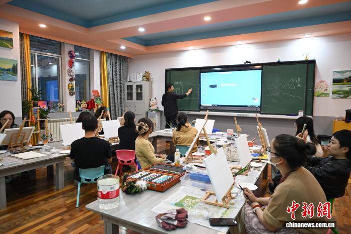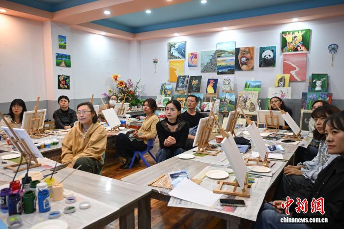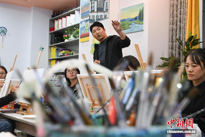 9月1日,2025年西藏自治區拉薩市第二期“青年夜校”正式開班。圖為夜校學員在上美術課。中新社記者 貢嘎來松 攝