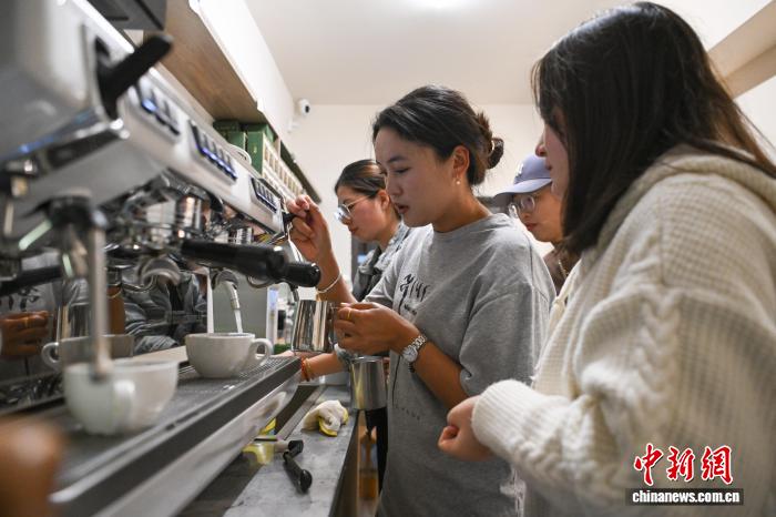 9月1日,2025年西藏自治區拉薩市第二期“青年夜校”正式開班。圖為夜校學員在上咖啡制作課。中新社記者 貢嘎來松 攝