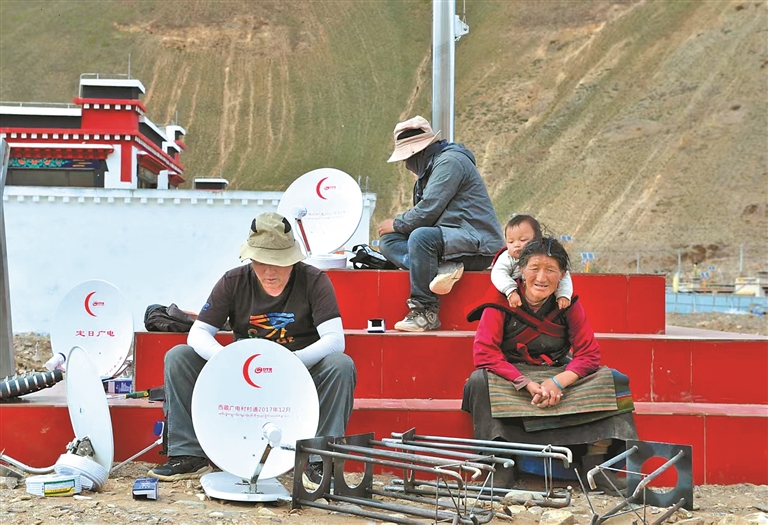 圖為在定日縣措果鄉野江村,工作人員為群眾安裝廣播電視直播衛星“戶戶通”設備。記者 旦增嘎瓦 攝
