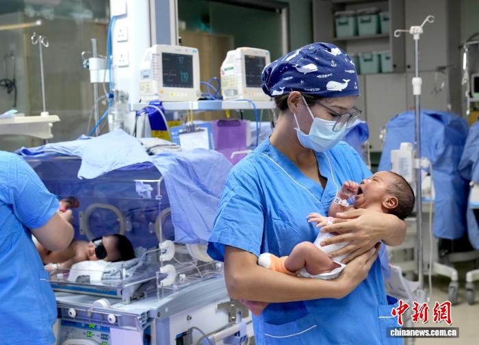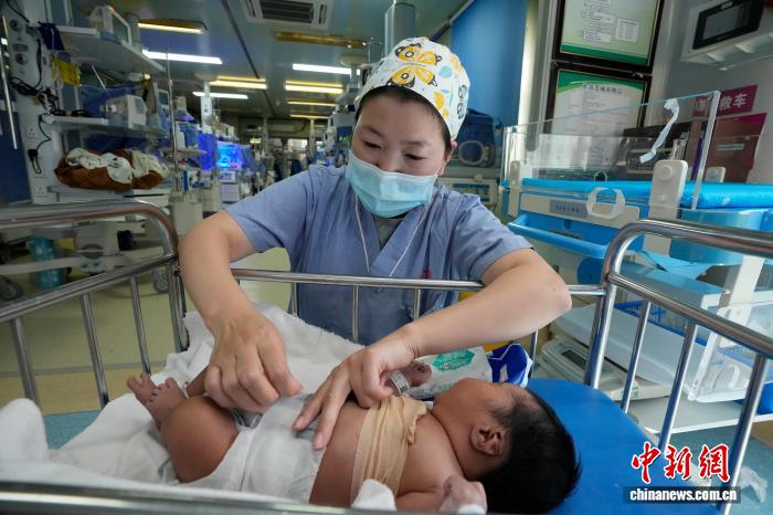 圖為9月5日,西藏阜康醫院新生兒科內,護士正在安撫新生兒。李林 攝