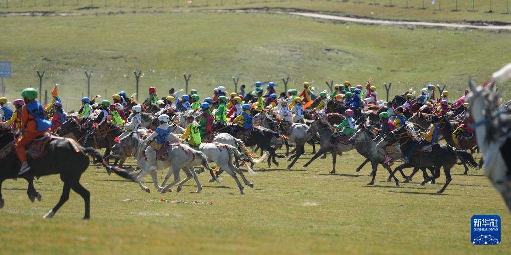 2024年8月12日,騎手在2024年恰青賽馬節傳統十公里大跑項目中角逐。新華社記者 晉美多吉 攝