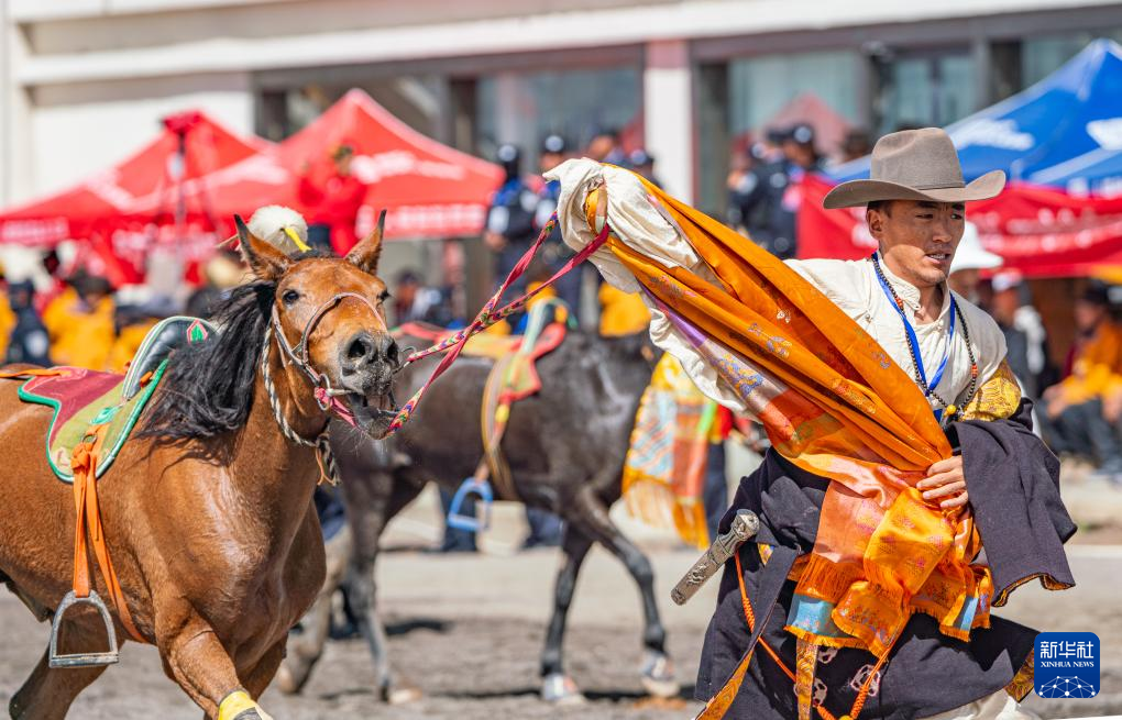 9月7日,騎手在傳統大跑項目前等待開賽。新華社記者 丁增尼達 攝