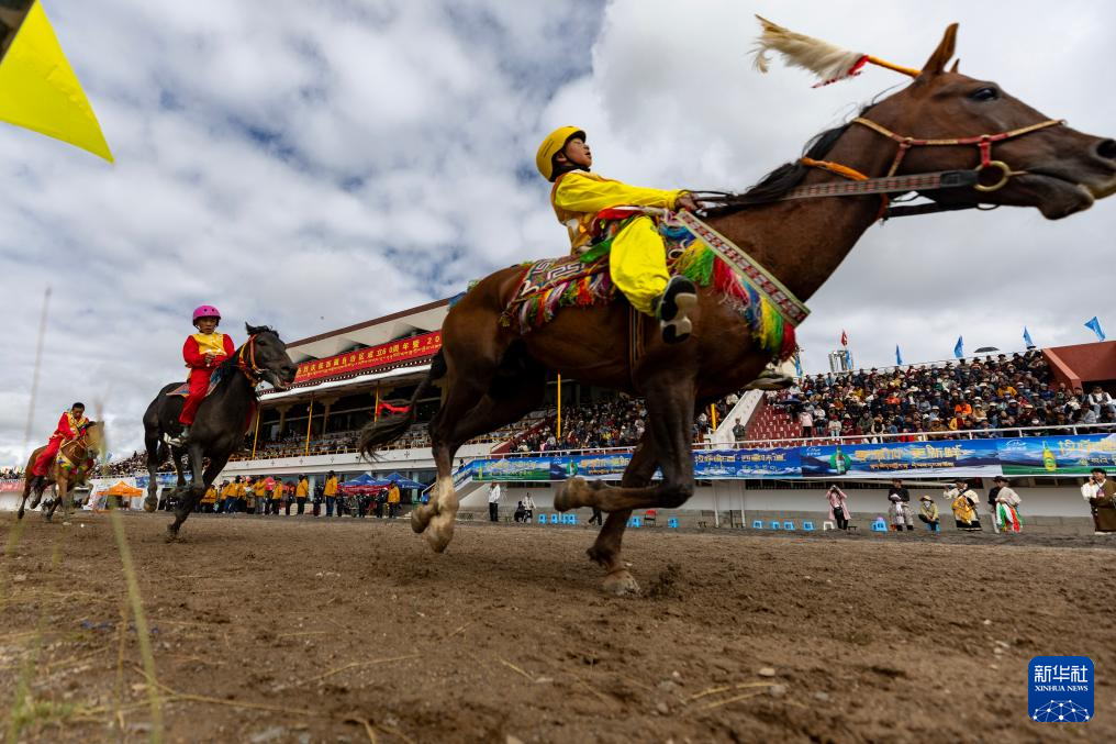 9月7日,騎手們在傳統大跑項目中馳騁。新華社記者 丁增尼達 攝