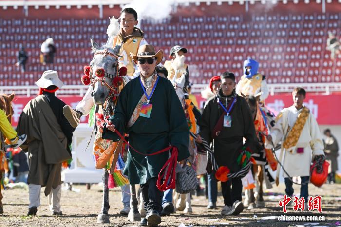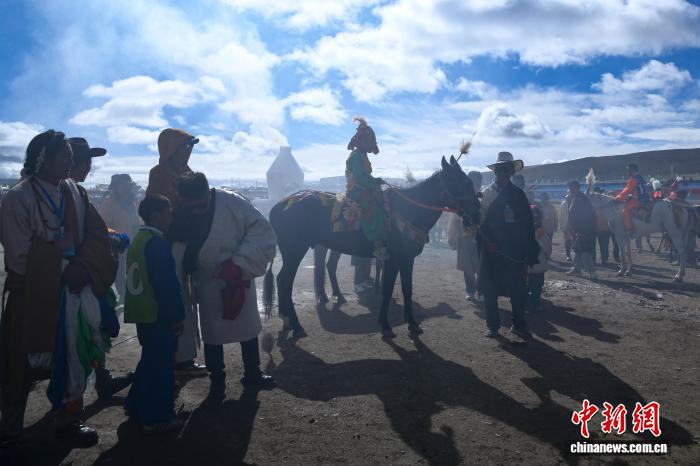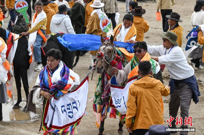 圖為參賽選手準備參加恰青賽馬節傳統大跑決賽。中新社記者 貢嘎來松 攝