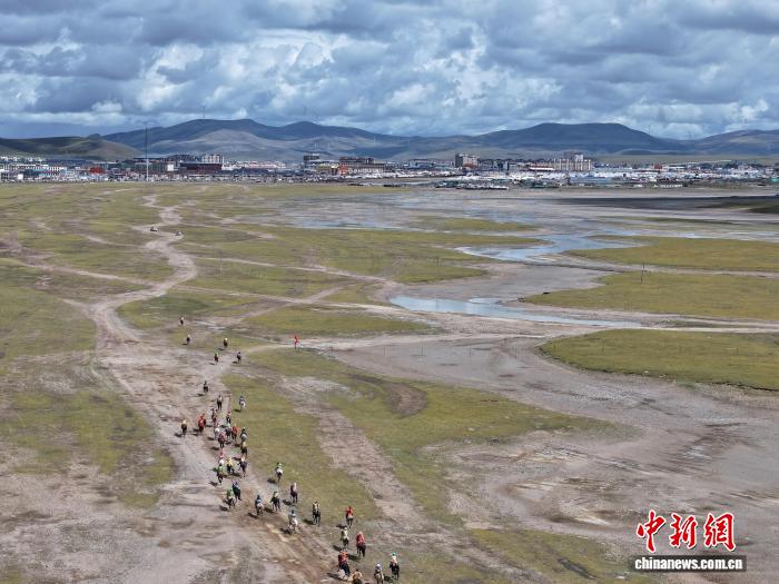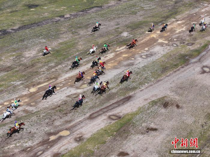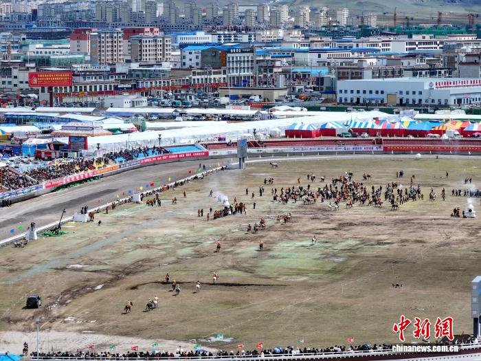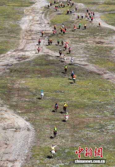 圖為恰青賽馬節傳統大跑決賽現場(無人機照片)。中新社記者 貢嘎來松 攝