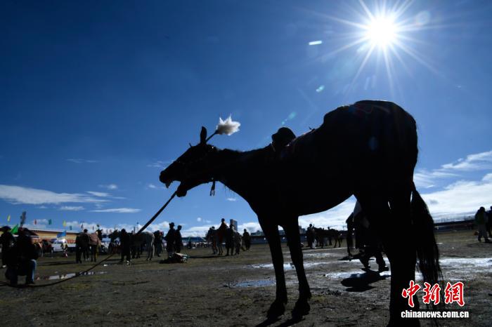 圖為參賽馬匹等待恰青賽馬節傳統大跑決賽。中新社記者 貢嘎來松 攝