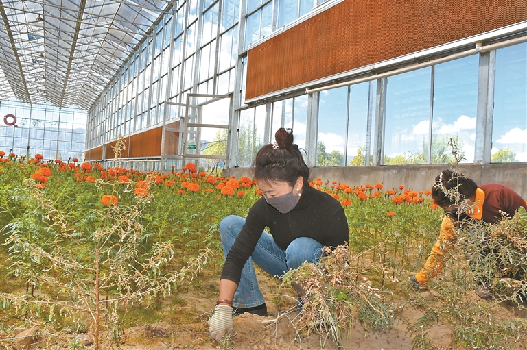 圖為在家門口實現就業的群眾在產業基地進行田間管理。記者 丹增平措 攝