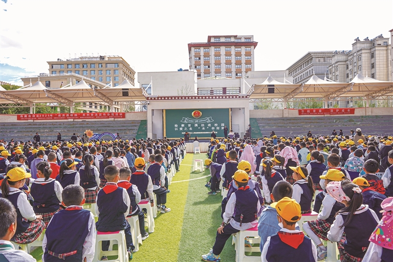 9月9日上午,由自治區(qū)高級人民法院、自治區(qū)人民檢察院、自治區(qū)教育廳、自治區(qū)公安廳、自治區(qū)司法廳、自治區(qū)普法辦、自治區(qū)戒毒管理局聯(lián)合主辦的西藏自治區(qū)2025年“送法進(jìn)校園”系列普法宣傳示范活動走進(jìn)拉薩市實驗小學(xué)東城分校,為師生們帶來了一場生動的法治課堂。