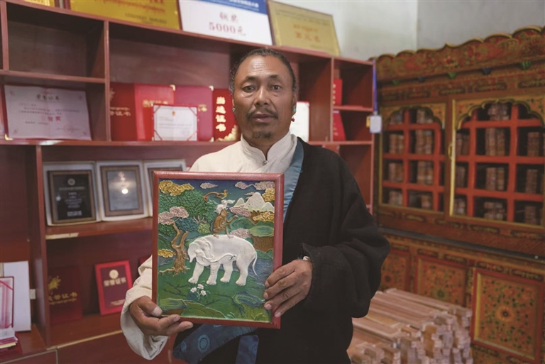 “‘酒香也怕巷子深’,以前普松雕刻這門手藝雖然精湛,但由于缺乏有效的宣傳推廣途徑,知曉的人并不多,產品銷售渠道也比較狹窄,只能靠少量的定制訂單維持。現在旅游‘火’起來了,游客多起來了,越來越多的人有機會近距離接觸到普松雕刻的精美作品,產生了濃厚的興趣,生意也越來越好了。”斯曲說。