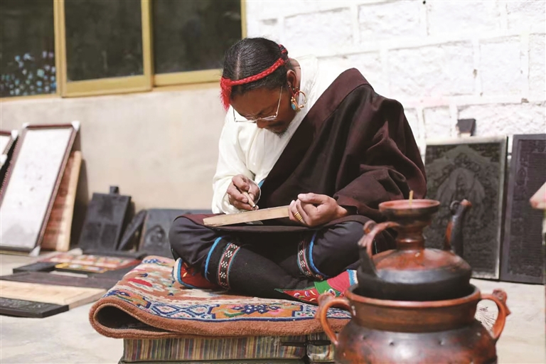 在傳承技藝的過程中,斯曲也面臨著不少挑戰。教徒弟時最大的困難就是讓他們靜下心來,因為這門手藝需要從小學起,不僅要學習拿工具,還要學習認字和雕刻。“以前光是學習雕刻文字,起碼要9個月時間,現在的孩子都很聰明,兩年基本就能掌握雕刻技藝。”斯曲欣慰地說。