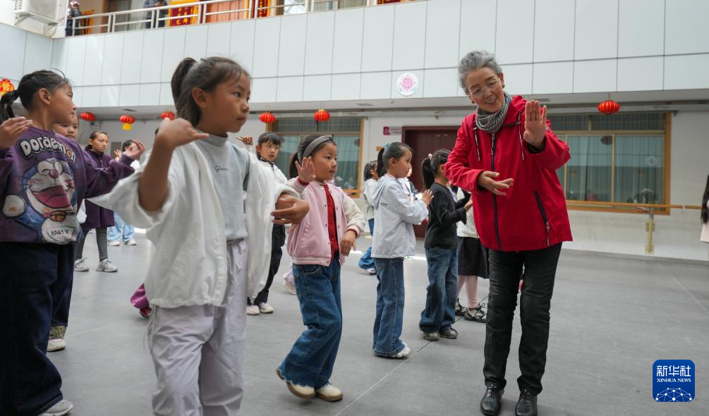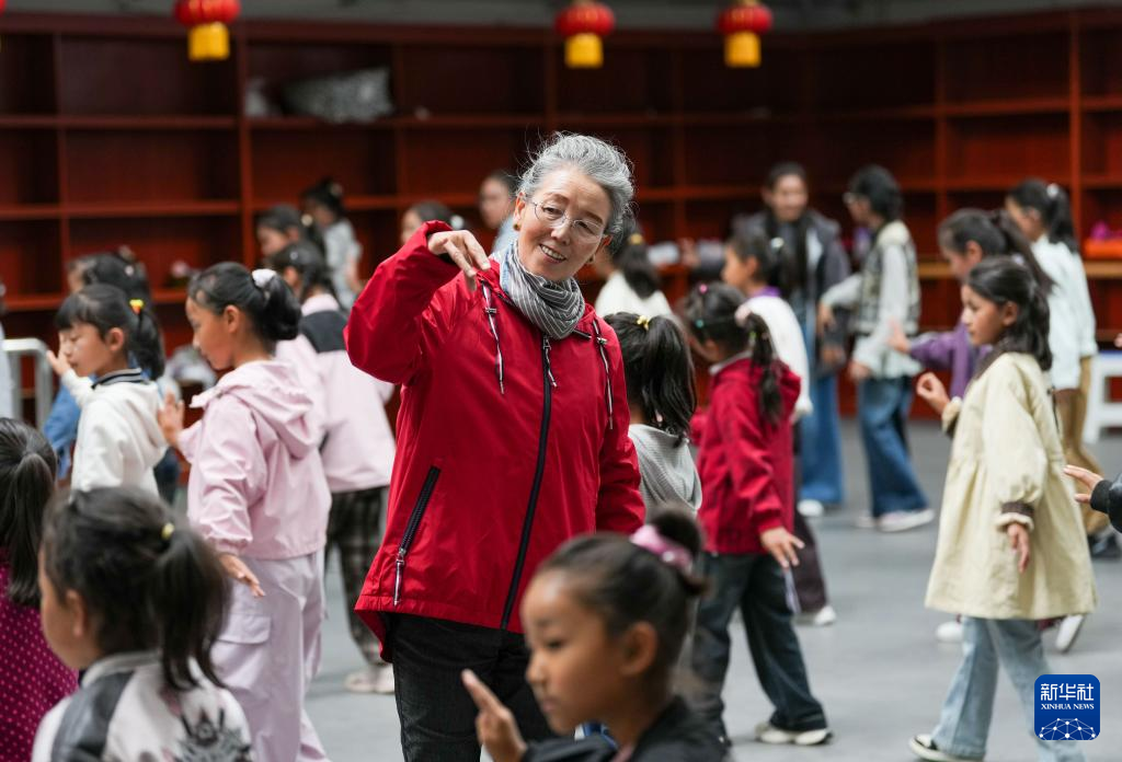 9月14日,巴桑老師在西藏自治區群藝館教授孩子們藏戲表演。新華社記者 晉美多吉 攝
