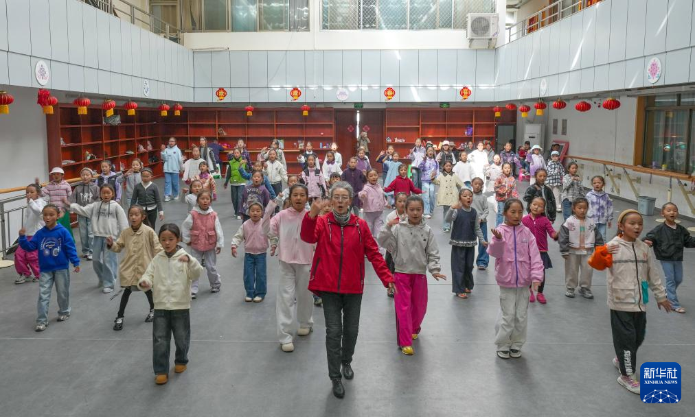 9月14日,巴桑老師在西藏自治區群藝館帶領孩子們學習藏戲表演。新華社記者 晉美多吉 攝