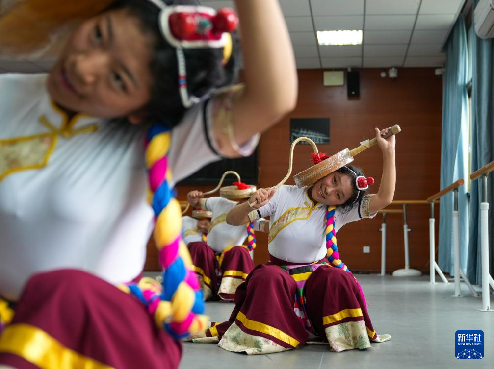 9月9日,在拉薩市第二中等職業技術學校,孩子們在練習熱巴舞。新華社記者 張笑宇 攝
