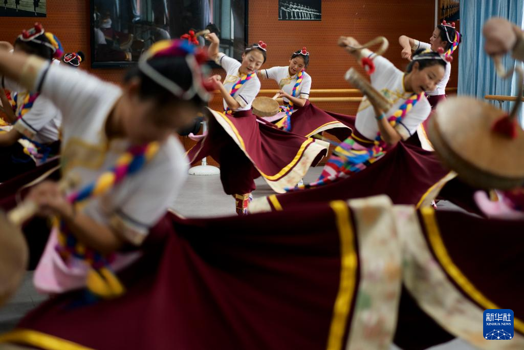 9月9日,在拉薩市第二中等職業技術學校,孩子們在練習熱巴舞。新華社記者 丁增尼達 攝