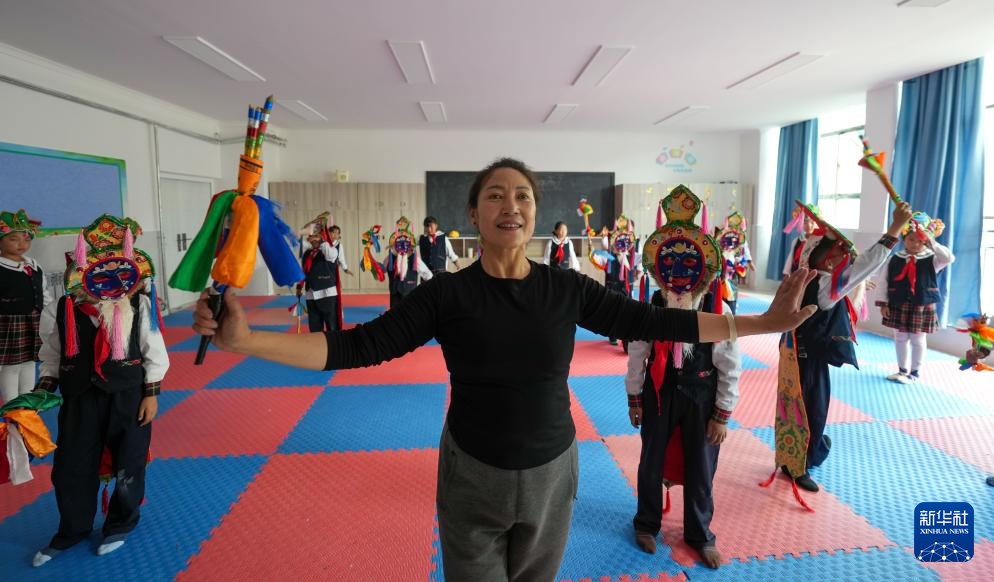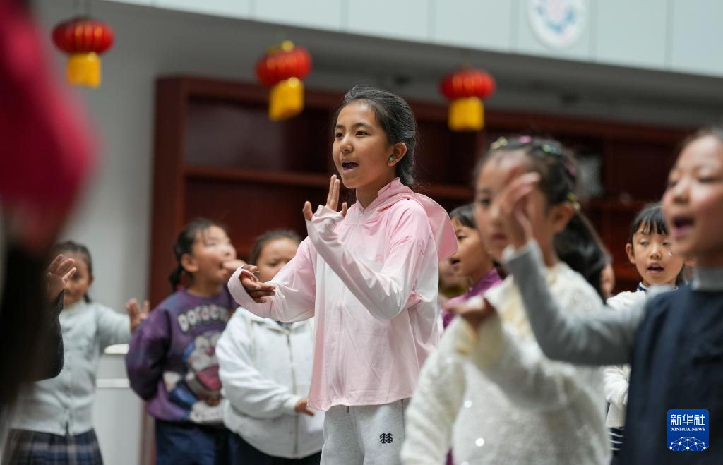 9月11日,在拉薩市實驗小學,藏戲老師帶領孩子們練習藏戲。新華社記者 晉美多吉 攝