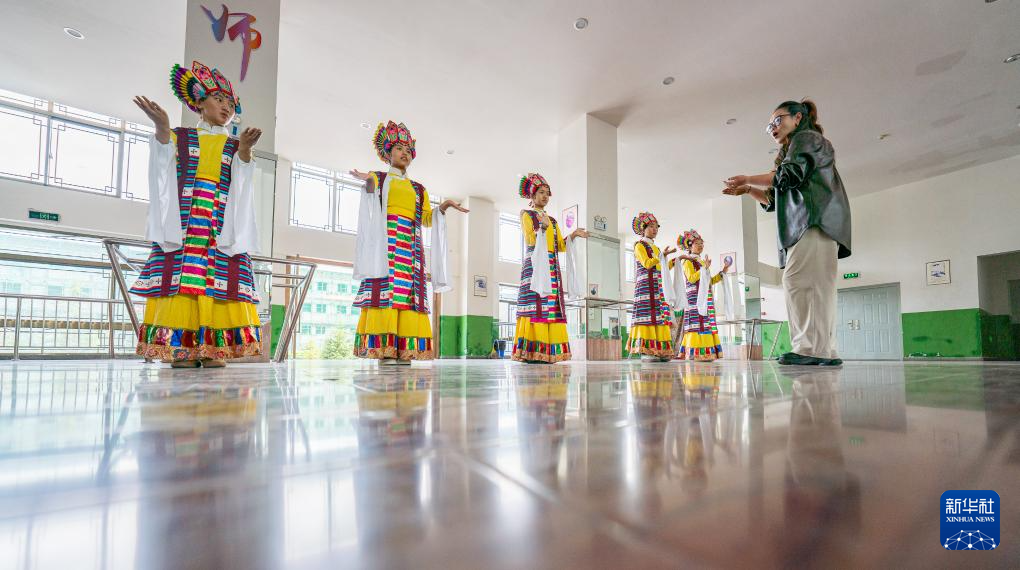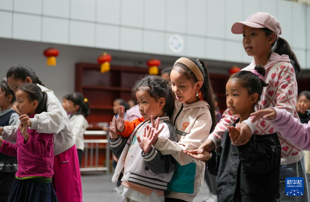 9月11日,在拉薩市實驗小學,藏戲老師指導孩子們練習藏戲身段動作。新華社記者 晉美多吉 攝
