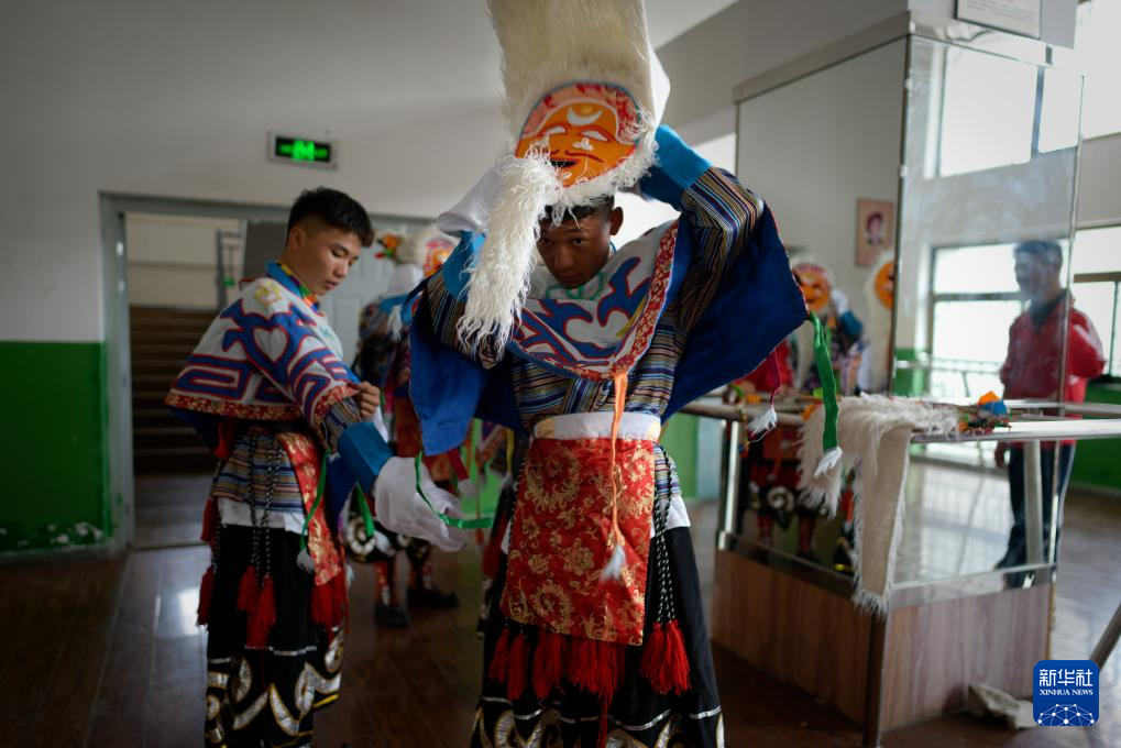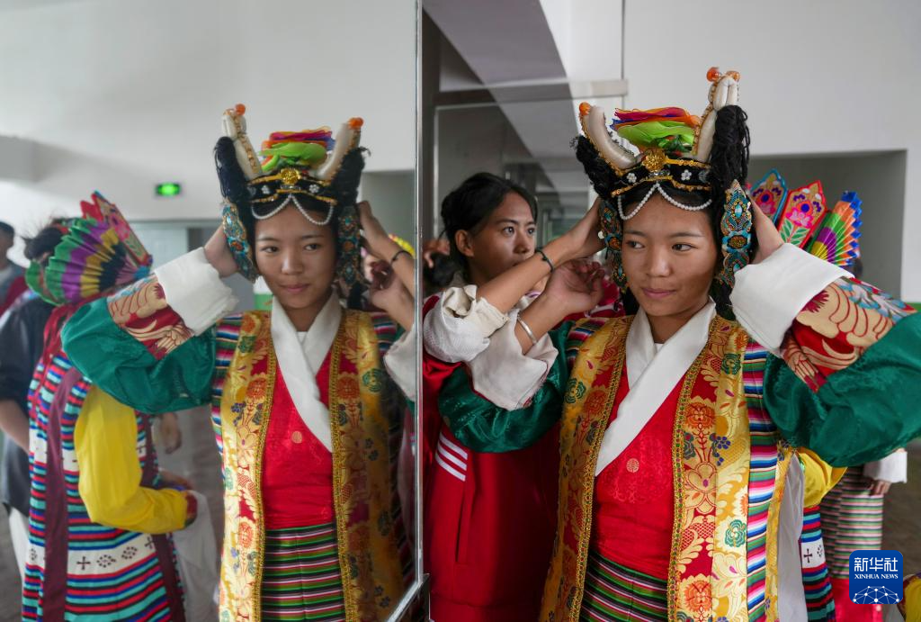 9月9日,在拉薩市第二中等職業技術學校,學生穿戴藏戲表演服飾。新華社記者 晉美多吉 攝