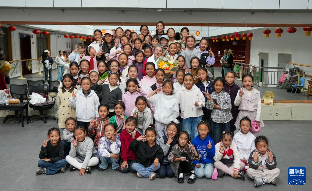 9月14日,在西藏自治區群藝館,巴桑老師和學習藏戲的孩子們合影留念。新華社記者 晉美多吉 攝