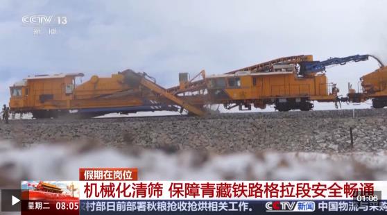 國慶中秋假期是團圓時刻,但也有不少人依舊堅守崗位,守護著千家萬戶的團圓。在平均海拔4500米的青藏鐵路格爾木至拉薩段上,西寧工務機械段的職工們假日不停工,加緊推進機械化清篩施工,保障假期高原鐵路的安全暢通。