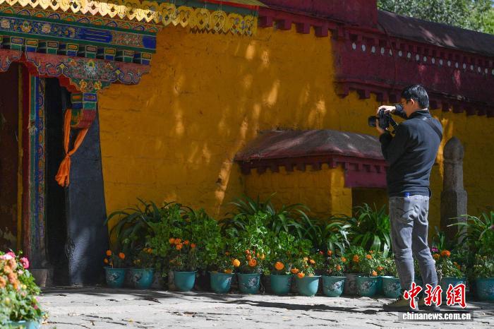 圖為羅布林卡內樹木葉片與藏式建筑相映成景。貢確 攝