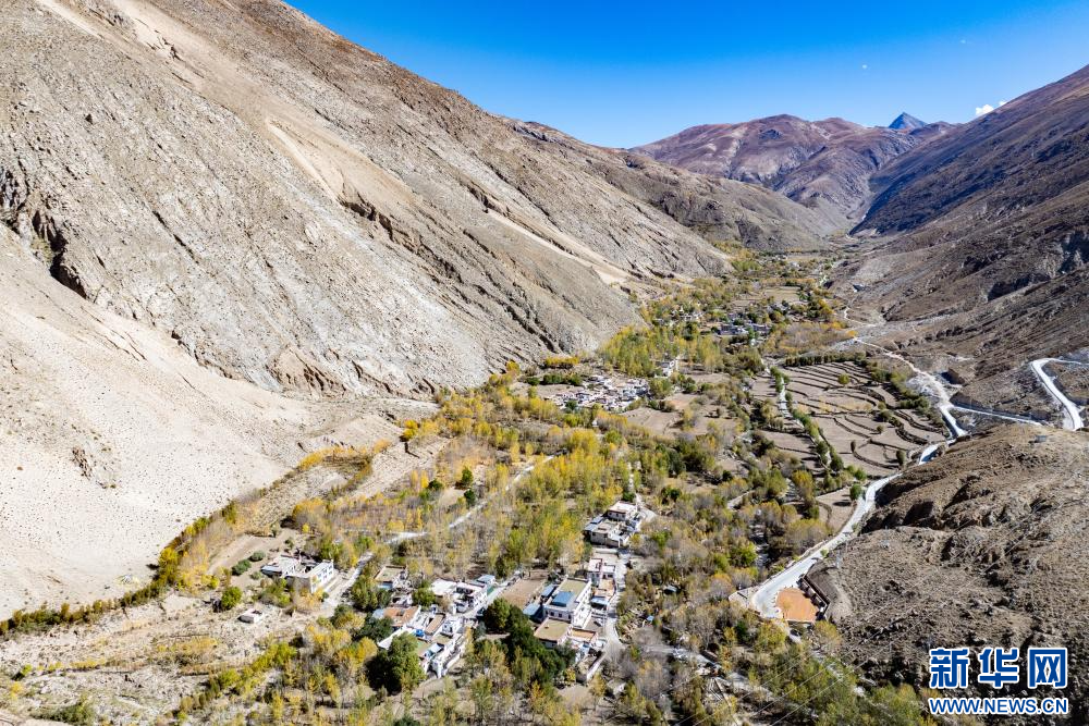10月17日拍攝的西藏拉薩市尼木縣吞巴鎮(zhèn)吞達村(無人機照片)。新華網(wǎng) 旦增努布 攝