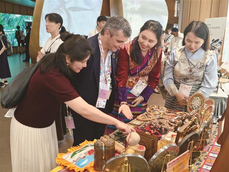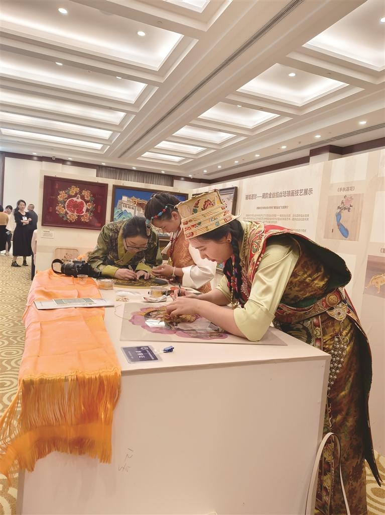 林芝市職業技術學校“藏韻金絲掐絲琺瑯畫”應邀參加職業教育優秀非遺教學成果展。本版圖由林芝市職業技術學校提供