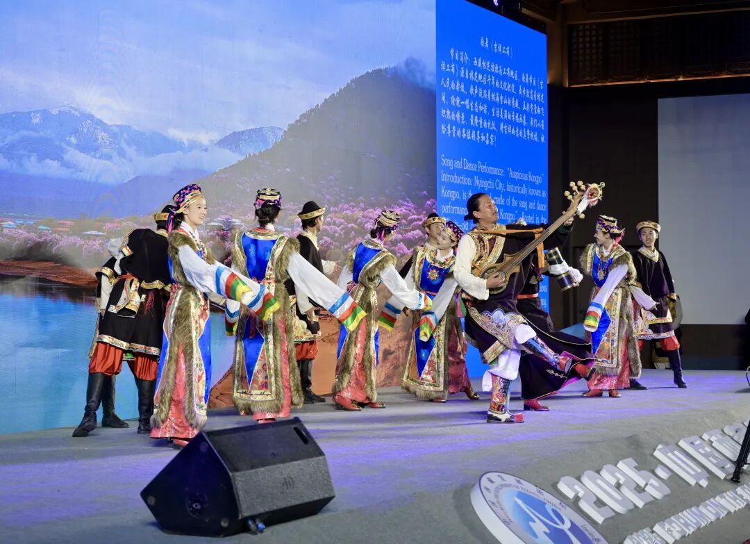 開幕式在《吉祥工布》的旋律中拉開了序幕。舞者們身著色彩斑斕的工布服飾,仿佛從雪山深處走來的精靈,正以熱情的舞步迎接八方賓客,每一個轉身、跳躍都充滿了對遠道而來客人的真摯歡迎。