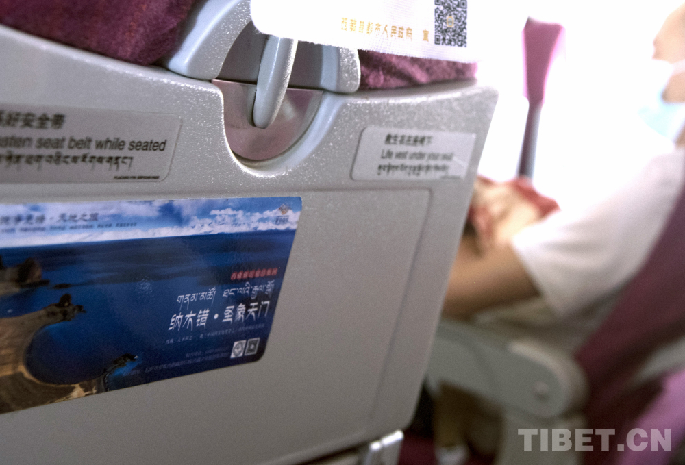 這是在西藏航空公司執飛的客機艙座后所張貼的“圣象天門”招貼圖(唐召明2020年8月17日攝)