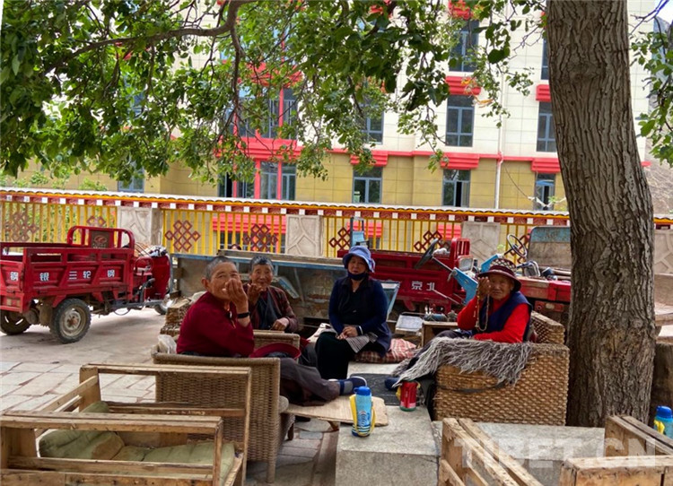 走出寨子,在村頭的大樹下有四位老人喝著甜茶聊天。