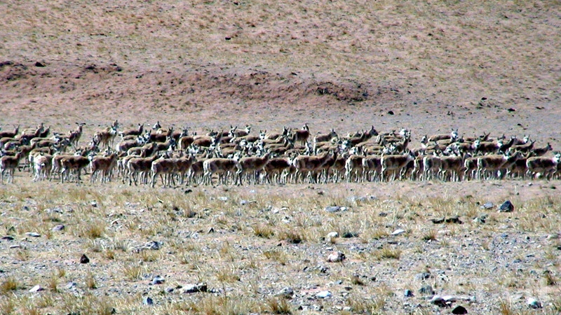 這是羌塘國家級自然保護區(qū)正在遷徙中的國家一級保護動物藏羚羊中的雌性藏羚羊(唐召明2006年攝)