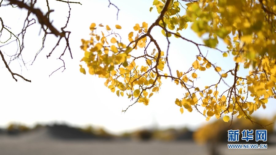 胡楊的葉子在陽光的照射下熠熠生輝。新華網(wǎng) 潘彬彬 攝