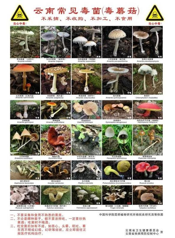 因此,云南省各級黨委政府和相關部門,將野生菌中毒防控工作作為為民辦實事的一項具體行動,狠抓防控宣傳教育和應急救治。不僅在各類媒體上通過各種形式對野生菌中毒防控進行了廣泛宣傳,還印制了大量野生食用菌中毒防控宣傳掛圖和折頁,發到村村寨寨、家家戶戶。