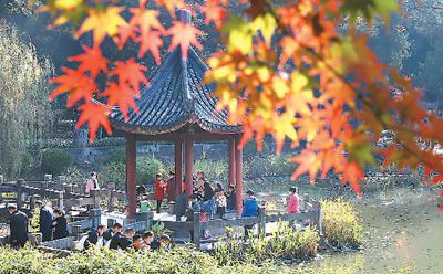 近日,江蘇南京棲霞山景區的紅葉樹種進入最佳觀賞期,漫山遍野的紅葉燦若云霞,令游客流連忘返。李文寶攝(新華社發)