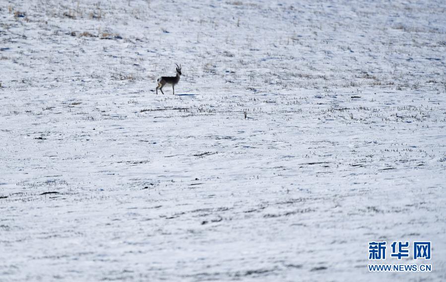 這是10月29日在青海省玉樹藏族自治州境內拍攝的一只藏原羚。新華社記者 張龍 攝